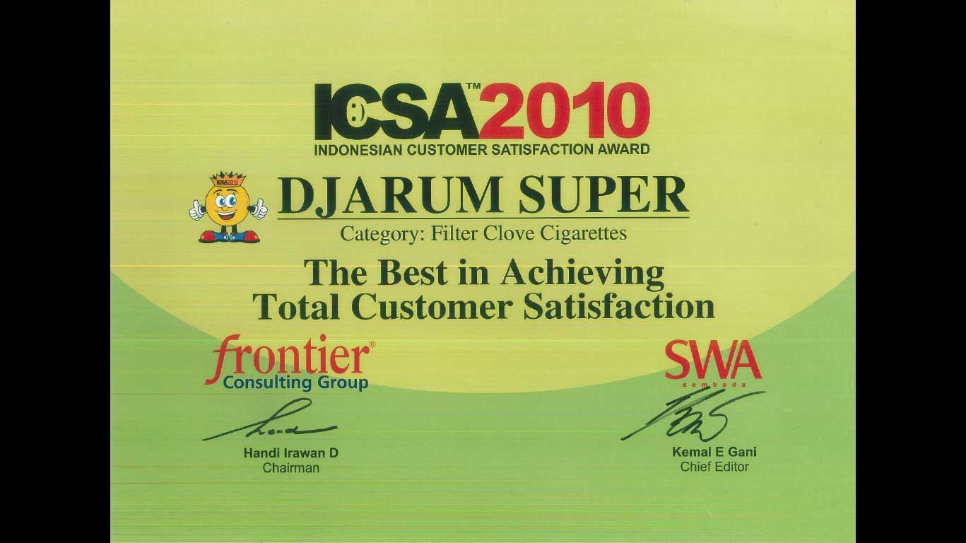 Sampai saat ini Djarum Super menjadi rokok favorit masyarat Indonesia. Djarum Super juga aktif dan progresif memberi dukungan kegiatan kolektif, khususnya pergelaran acara musik dan olahraga. Djarum Super akan terus tumbuh bersama semangat masyarakat Indonesia.