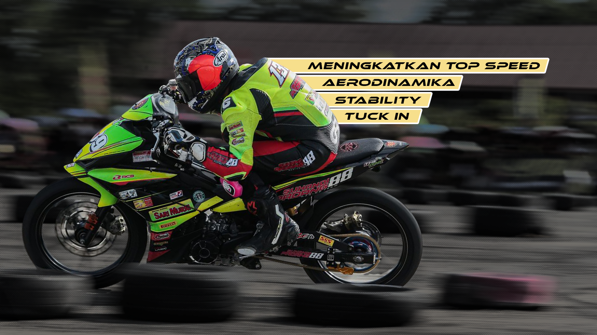 Jadi, teknik ini namanya tuck in. Teknik yang memungkinkan rider balap nunduk dan kaya jadi satu kesatuan sama motornya. Kalo lo nonton Superprix 2025 seri 1 di Sirkuit Mijen Semarang kemarin, pasti lo liat rider-ridernya pada nunduk di trak lurusan kan. Bukan tanpa alesan, tapi ada beberapa pengaruh yang signifikan buat performa balap rider dan motornya pas balapan.